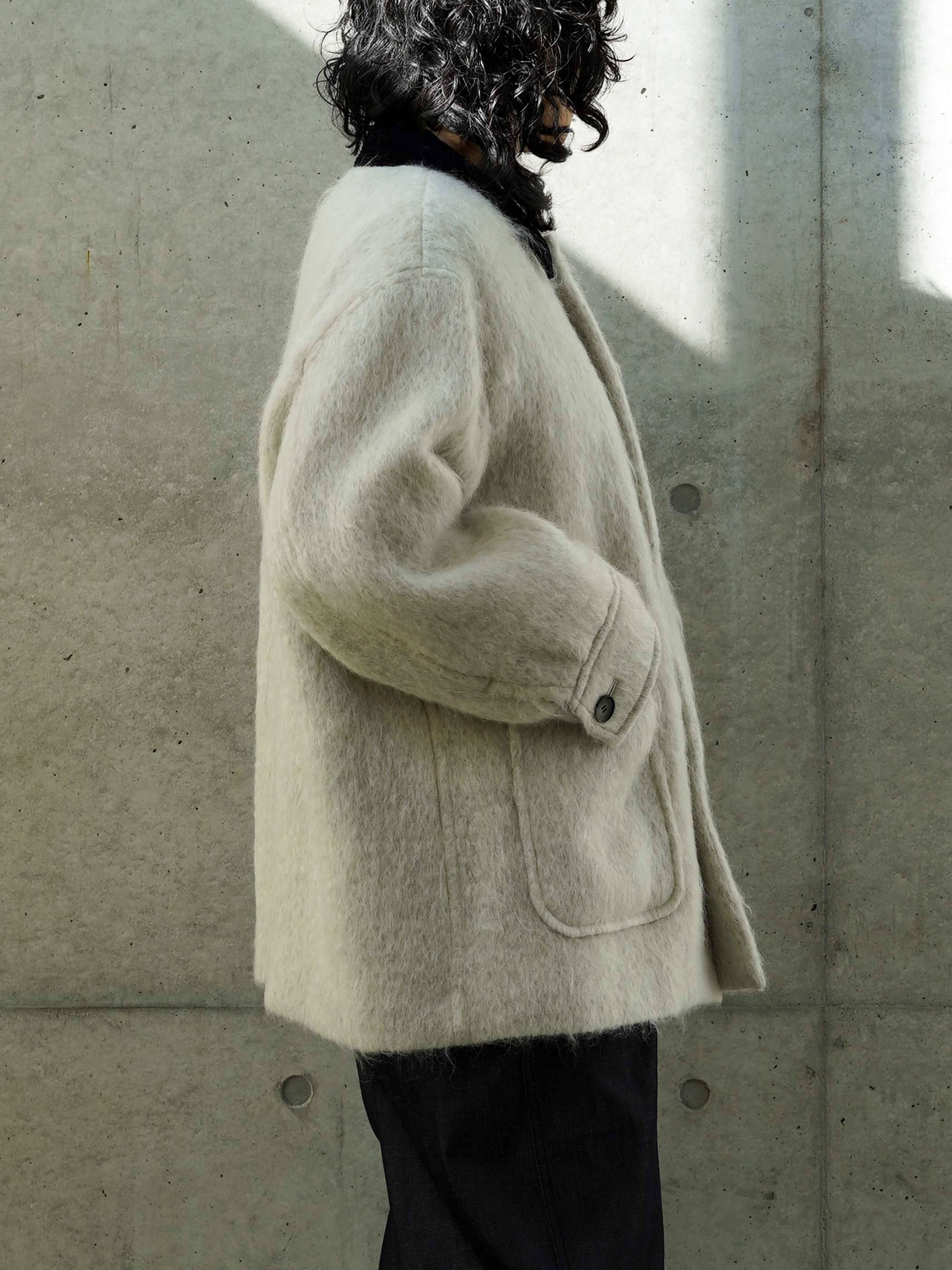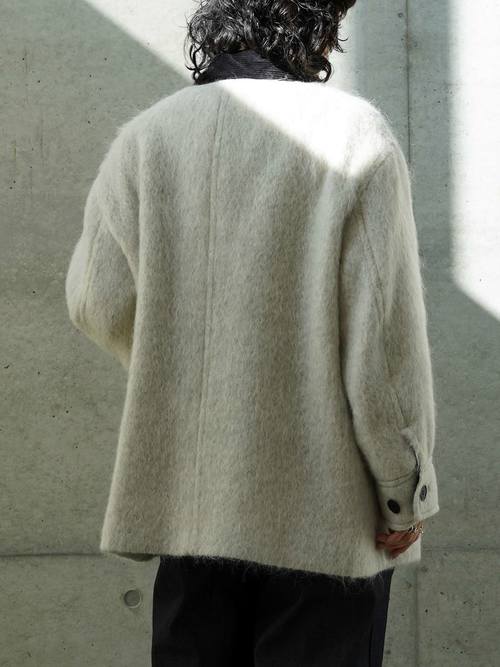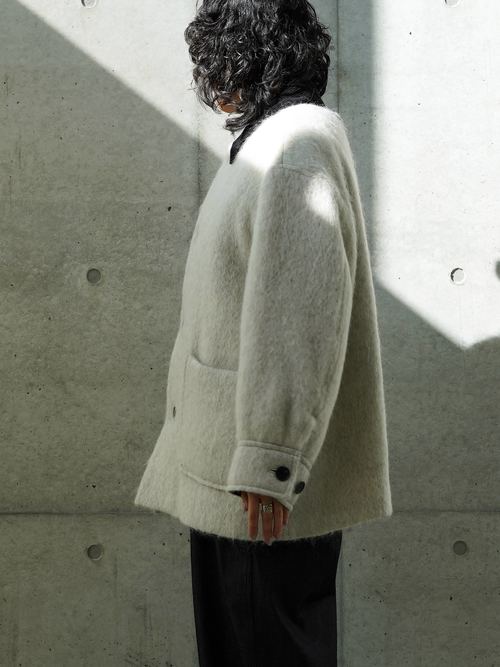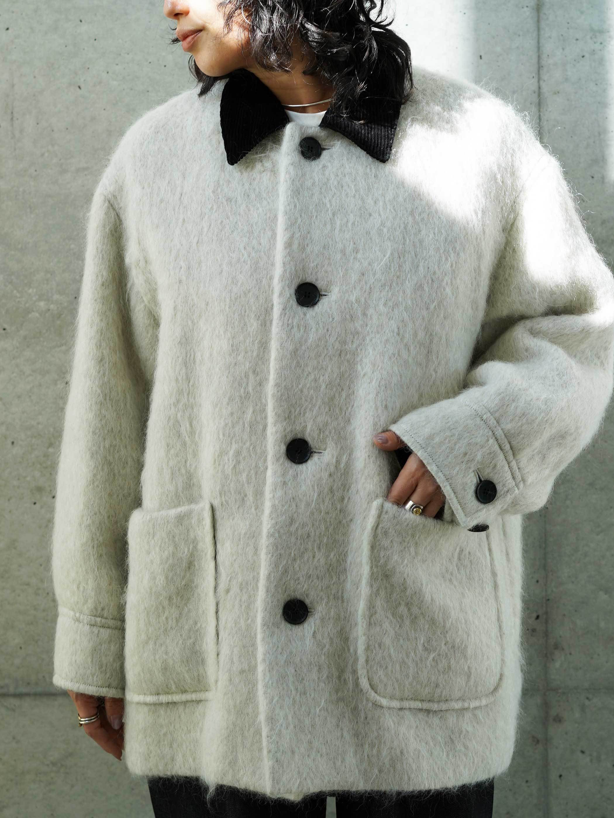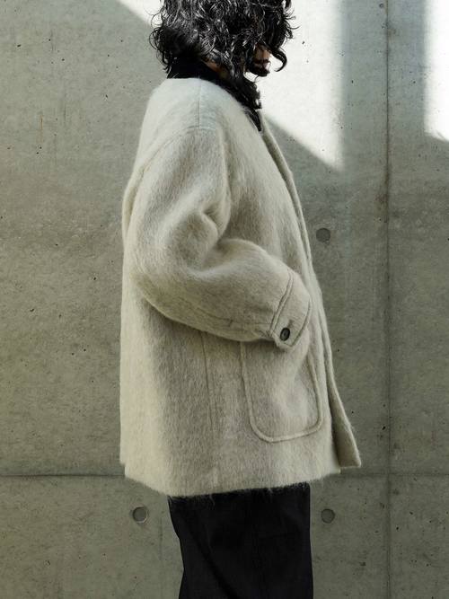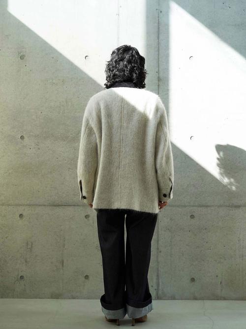 デザイナーが選んだのは、ワークウェアの王道であるカバーオールというヘリテイジな存在。そのラフな佇まいをあえて、アルパカやモヘアが混ざった上質な生地で仕立てました。カバーオールなのに、軽くて暖かく、身体を包み込むような柔らかさが魅力。