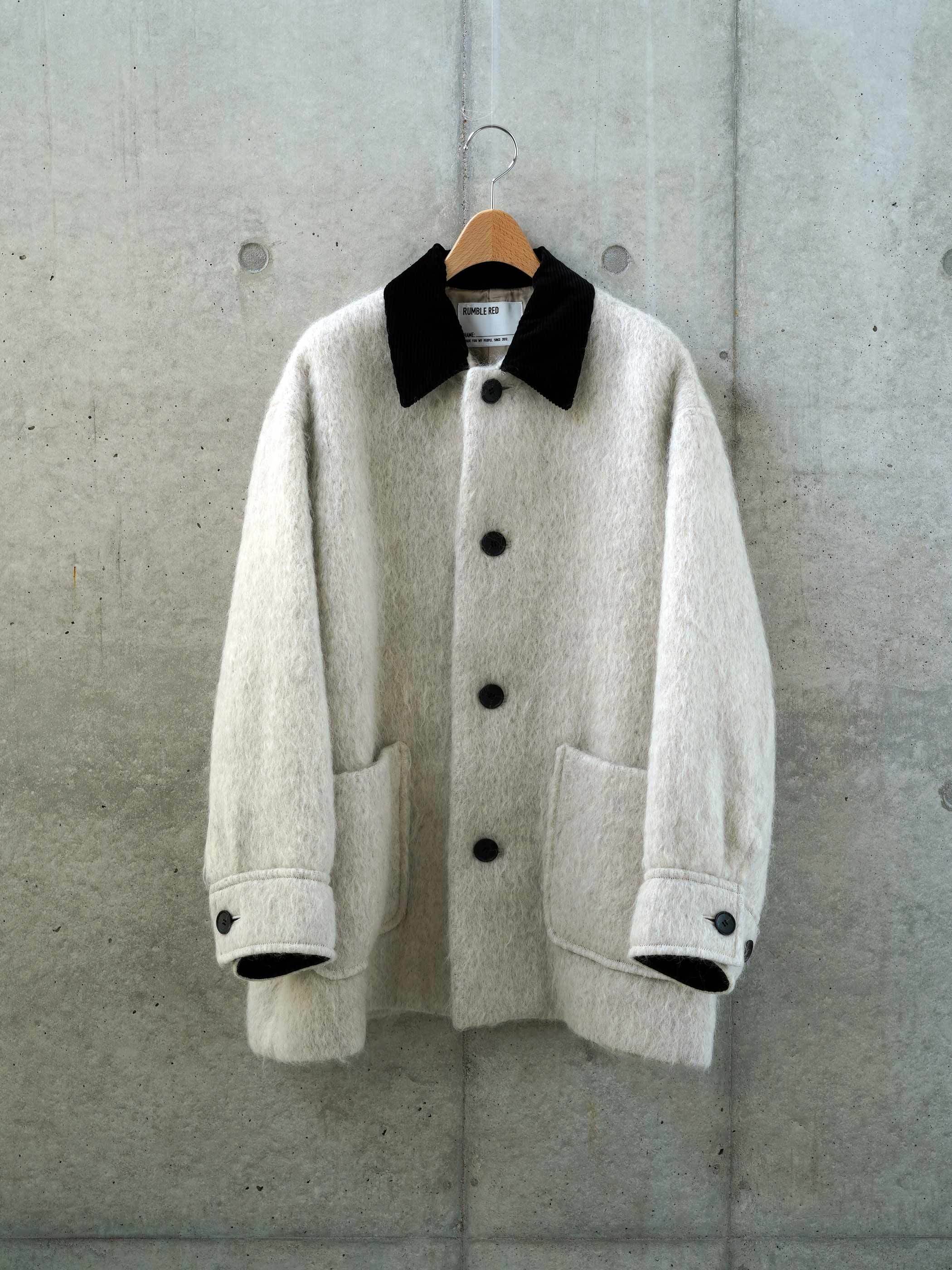 オーバーサイズのシルエットが生む余白が、力強さの中に静かな品を宿します。タフなアイテムを素材の美しさで再解釈した、RUMBLE REDらしいバランス感覚が光る一着です。